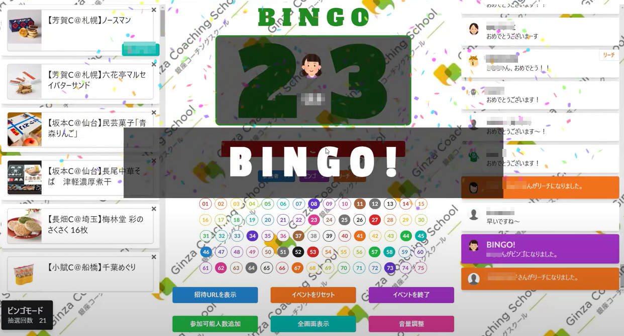 最終日は、恒例の楽しいBINGOゲーム会とオンライン懇親会で締めくくります。多数、景品をご用意しています。